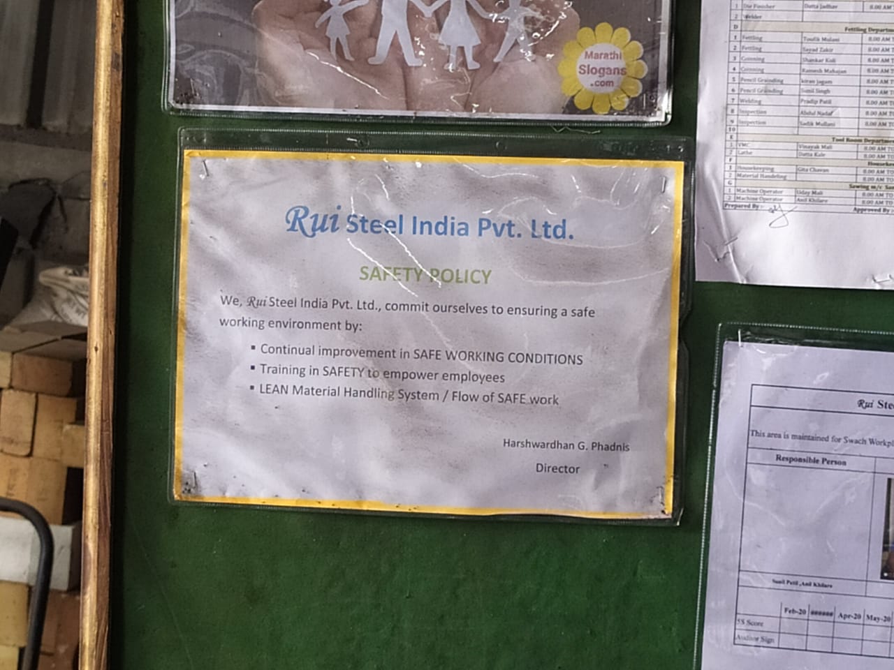 Industrial Safety Visit – RUI Steel India Pvt Ltd Kolhapur